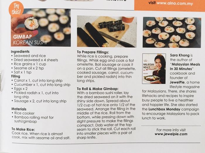 Did you see my recipe in The Star last Friday? It’s in Aino Living brochures which were slipped in the papers. It was only available at selected areas in Klang Valley though. I didn’t manage to get a copy so I dropped by Aino Living at 1U and helped myself with their brochures: