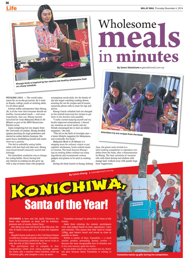 “Sara Khong, 28, is of the view that everyone should eat healthy, homecooked meals – and more importantly, they can. Khong recently launched her book Malaysian Meals in 3o minutes as part of the MPH Masterclass Kitchen Series”